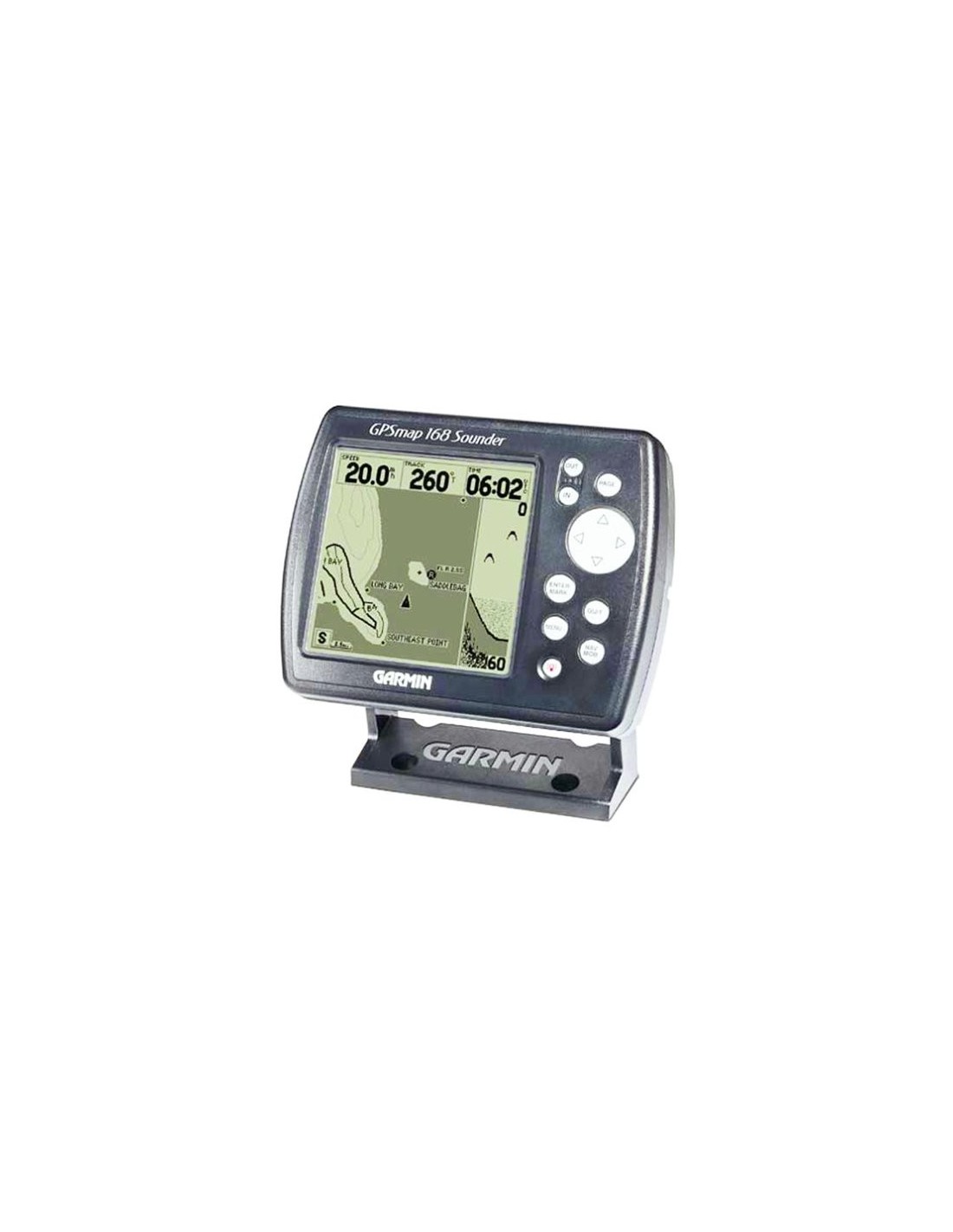 GPS Garmin. Incluye una gran cantidad de funciones en una unidad elegante y compacta. Es una combinación de receptor GPS de 12 canales paralelos y tablas de predicción de mareas. Además incluye plotter con un buscador de profundidad. Mapa de base mundial integrado y capacidad para descargar 2.5 MB de datos de mapas adicionales. Pantalla retroiluminada LCD FSTN gris de 4 niveles con 240x240 píxeles. Posee un buscador de profundidad de 150 W para facilitar la captura de los peces y cuenta con tecnología para separar las devoluciones de peces de termoclimas y estructuras.