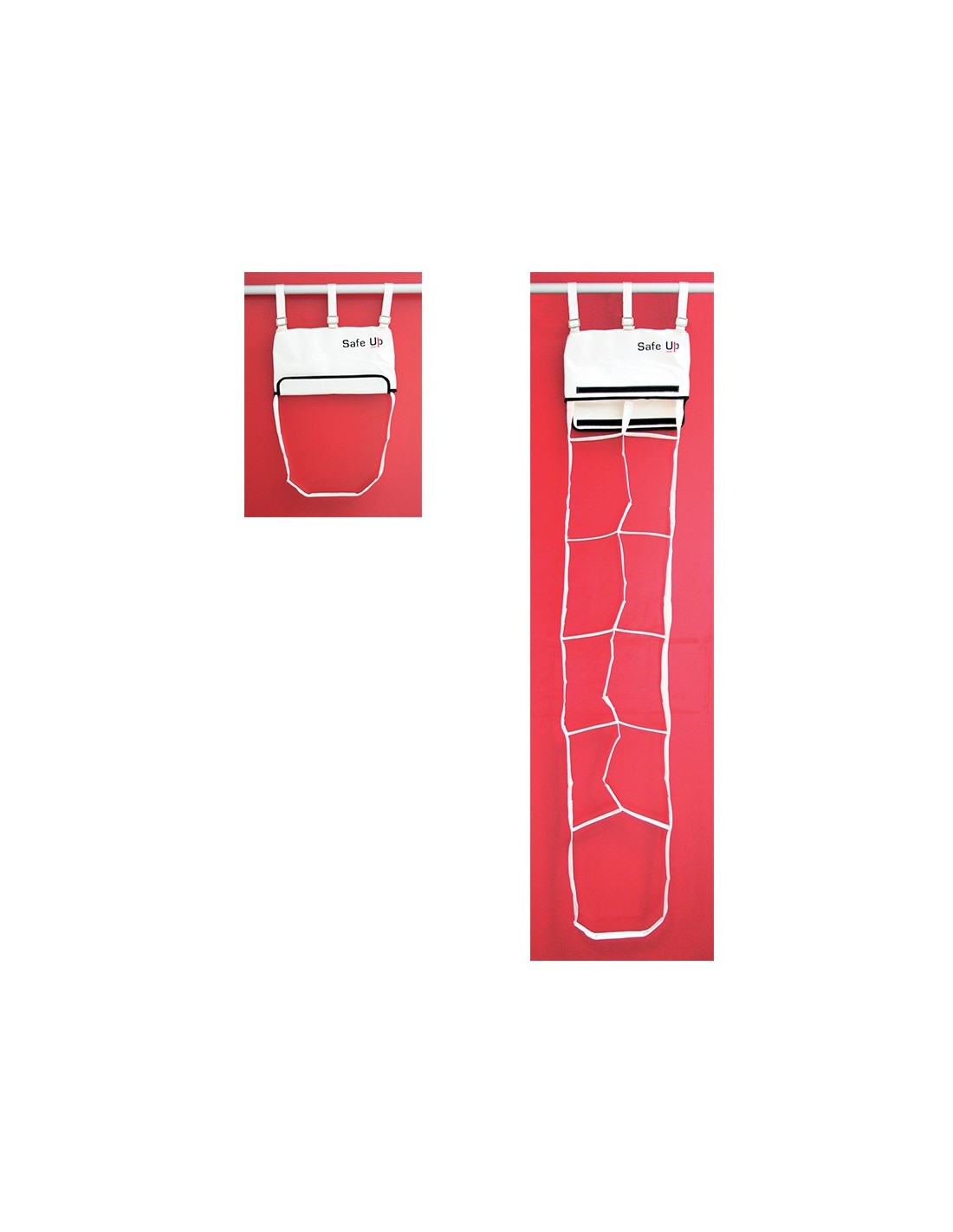 Escala de seguridad Safe Up, proporciona un elemento de seguridad para requerimientos instantáneos de volver a bordo. Despliegue inmediato. Fabricada en tela duradera resistente a la luz del sol y medio ambiente marino, liviana e impermeable. 5 peldaños.