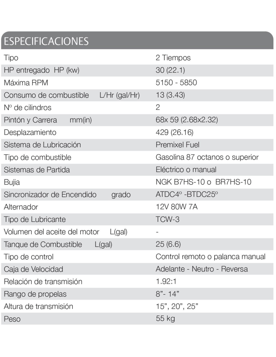 - Gasolina 87 octanos o superior
