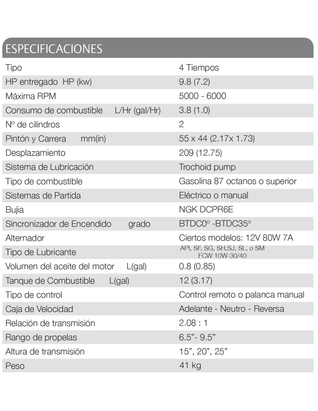- Gasolina 87 octanos o superior